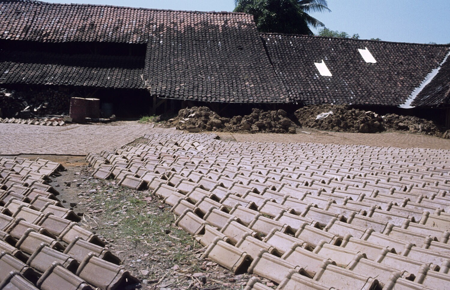 Steenfabriek te Plered, West-Java. Drogen van bakstenen in de zon.