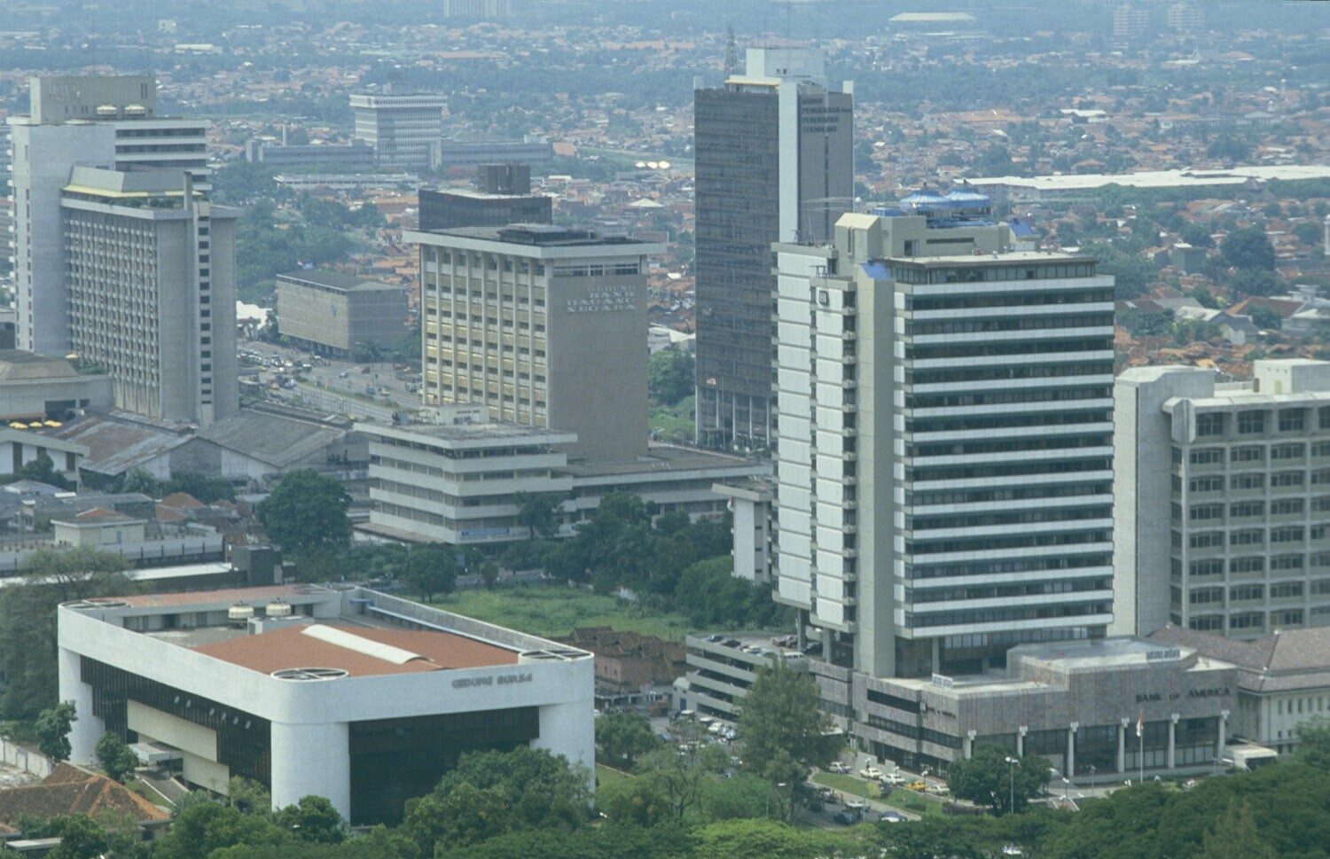 Moderne hoogbouw langs de Jalan Thamrin in Jakarta, Java.