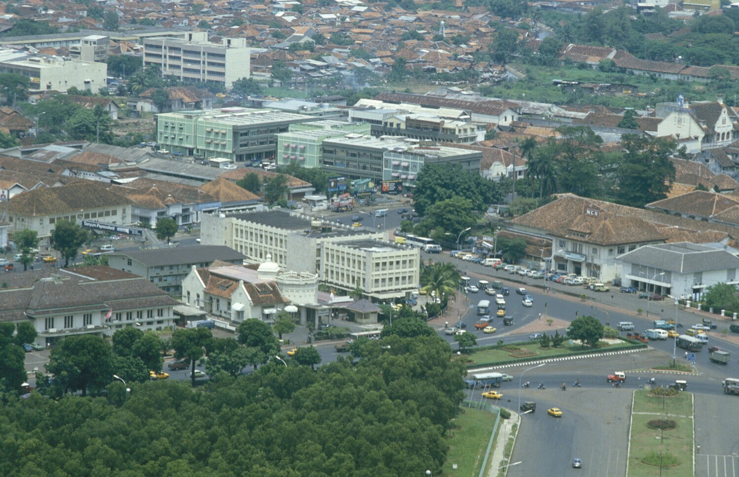 Oud en nieuwbouw rond het Merdeka plein in Jakarta, Java.