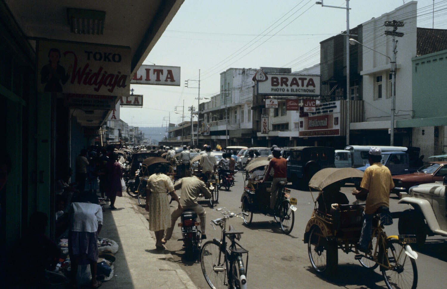 Straatbeeld van het centrum van Malang, Oost-Java.