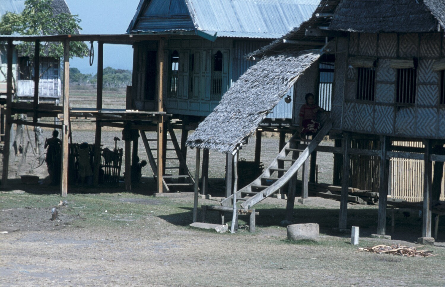 Typische Makassaanse woningbouw aan de nieuwe tolweg tussen Ujung Pandang en het vliegveld op Sulawesi.