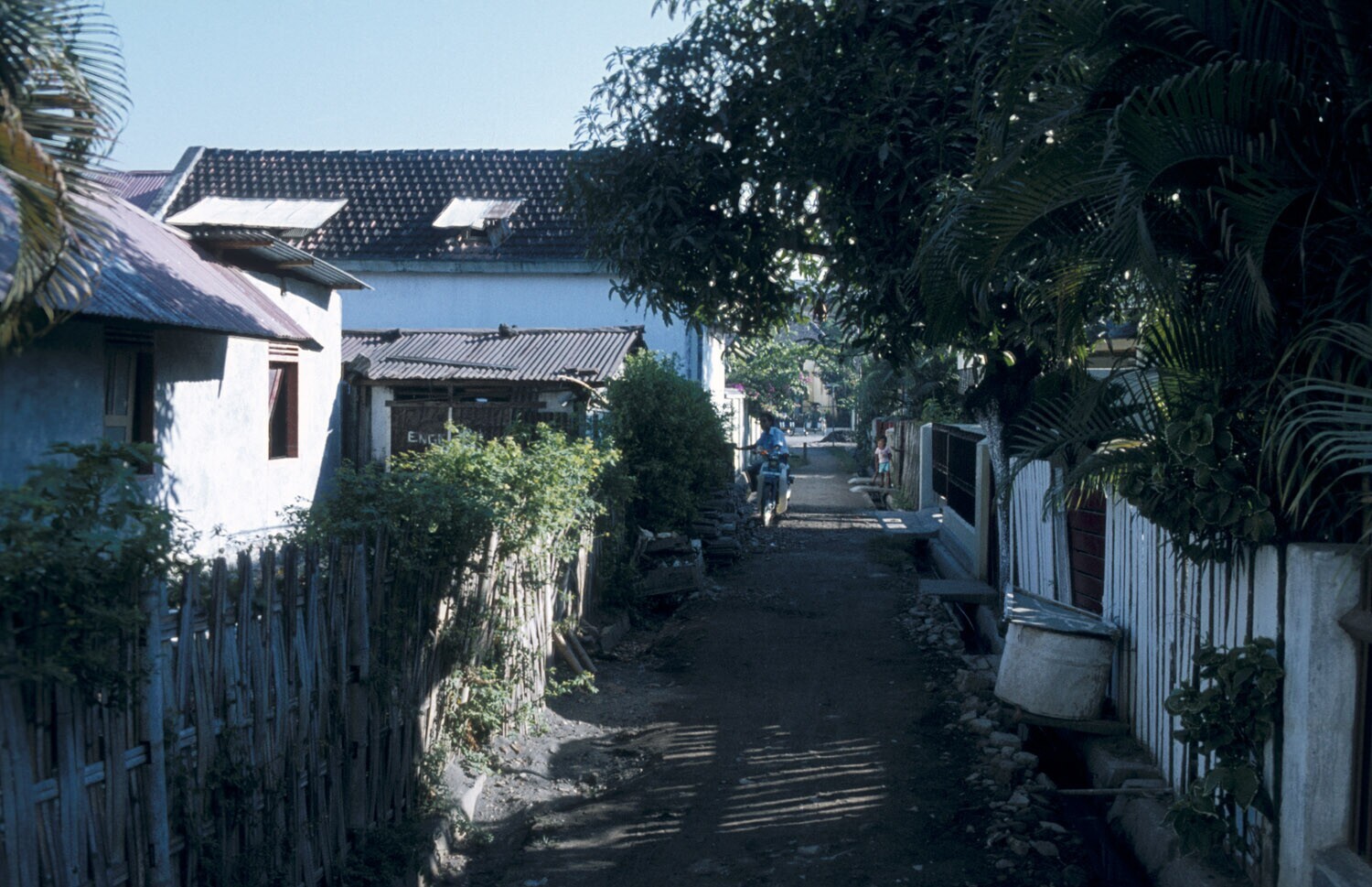 Steegje in het hart van het Ambonkamp in Ujung Pandang, Sulawesi.