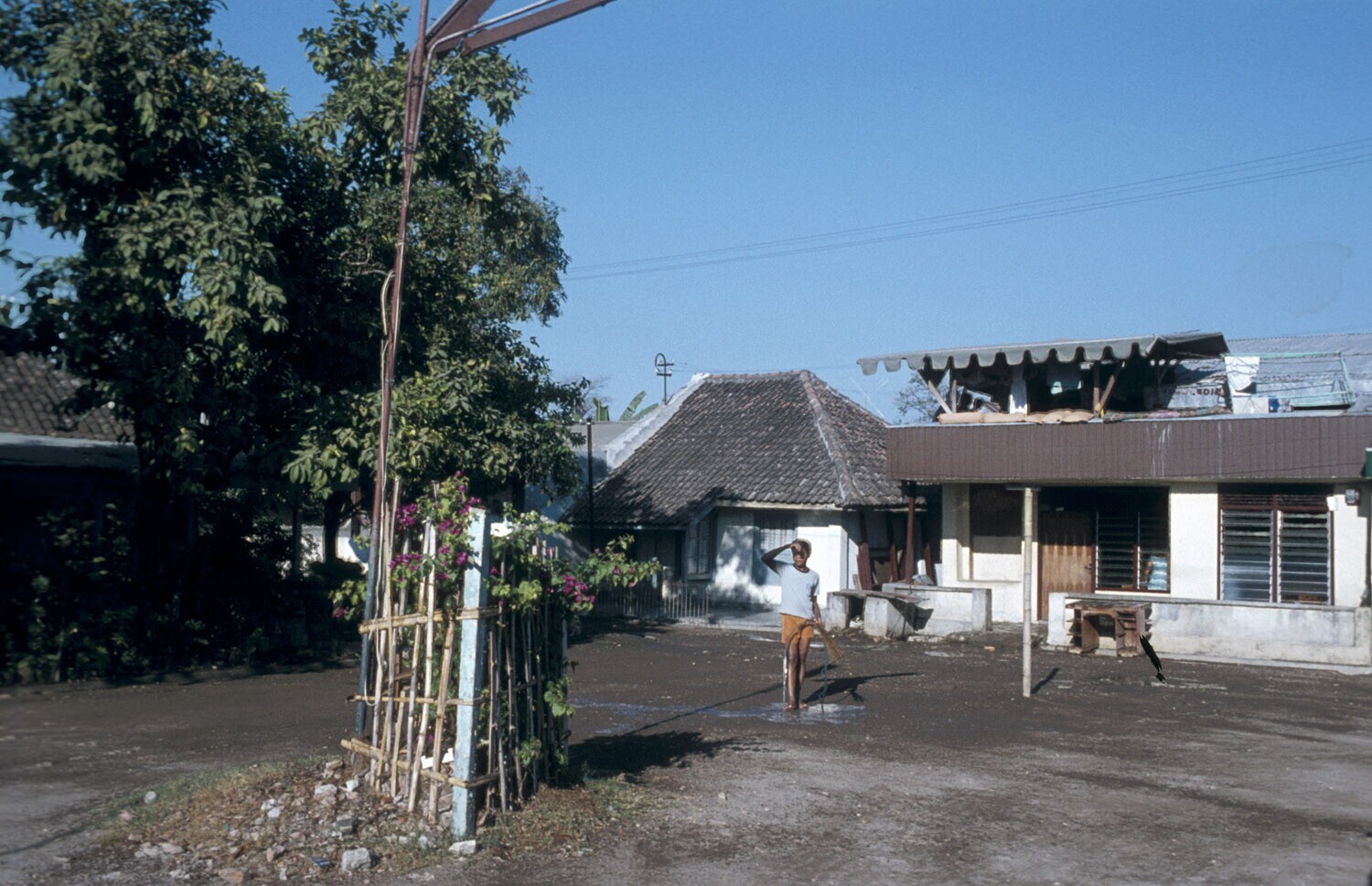 Woningen rond het pleintje voor de Bethanta kerk in het Ambonkamp in Ujung Pandang, Sulawesi.