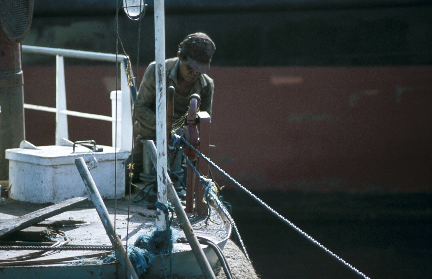 Werkzaamheden aan boord in de haven van Bitung, Sulawesi.