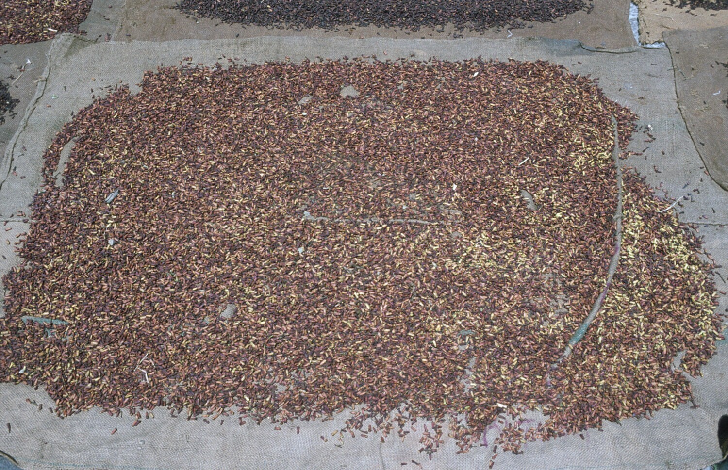 De geoogste kruidnagel wordt in de zon te drogen gelegd, Tondano, Sulawesi.