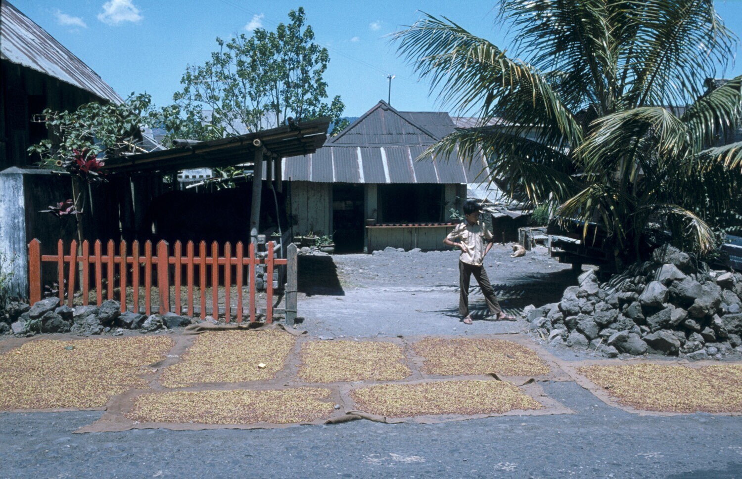 De geoogste kruidnagel wordt in de zon te drogen gelegd, Tondano, Sulawesi.