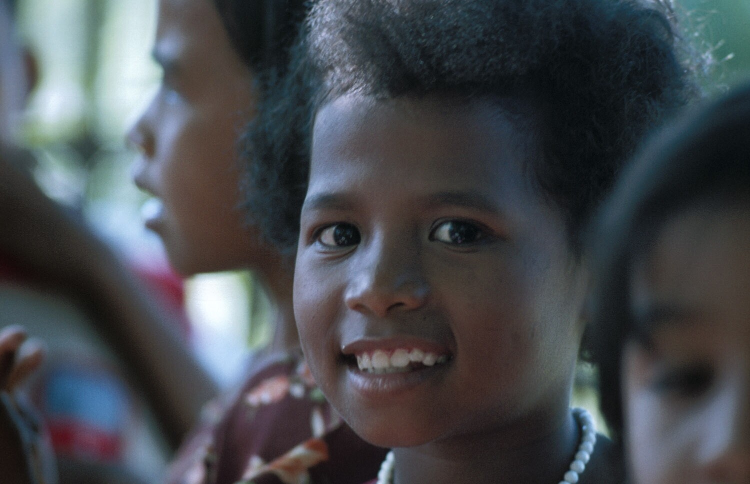 Close-up van een meisje uit Tulehu op Ambon, Molukken.