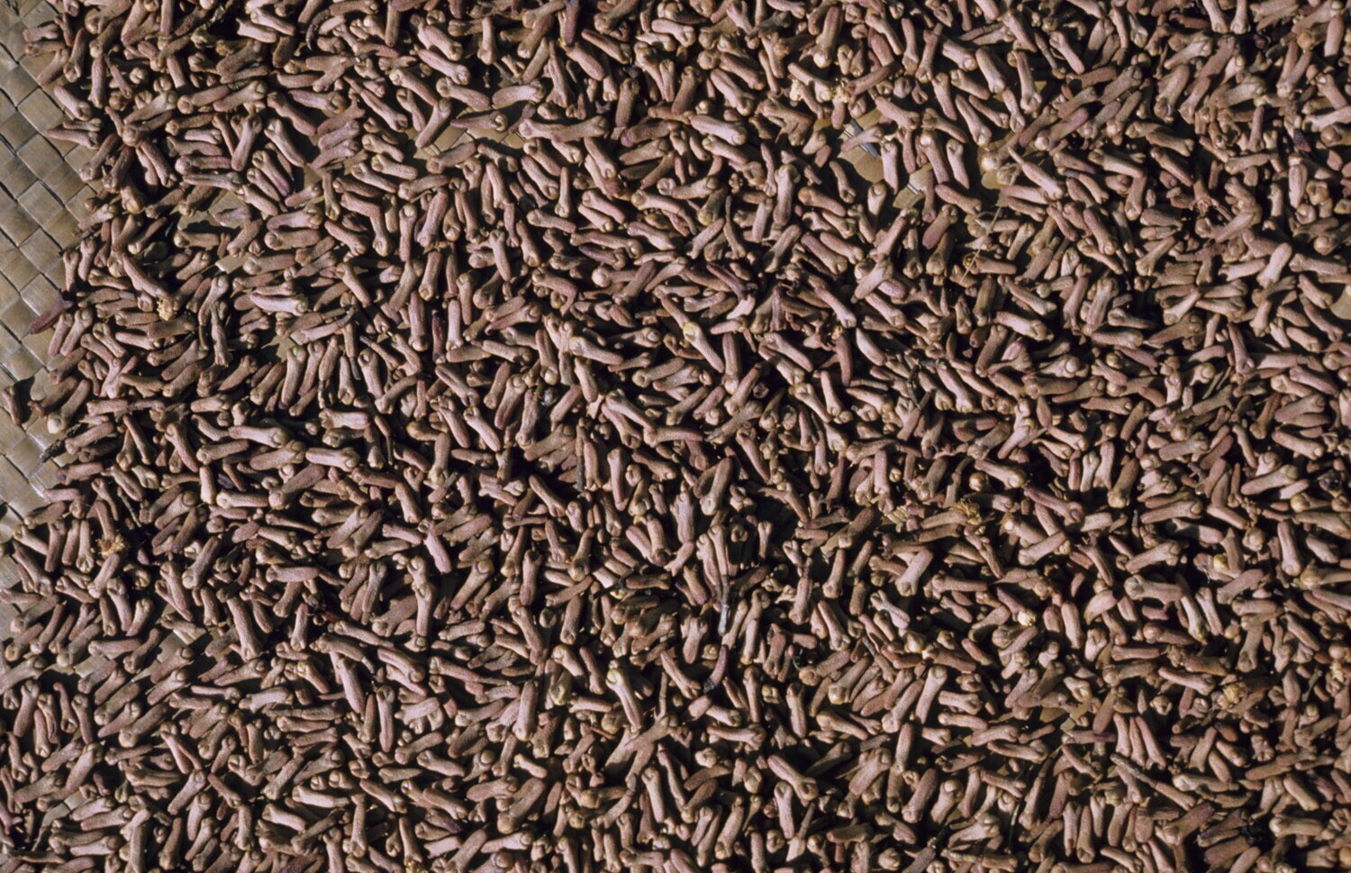 Close-up van drogende kruidnagelen, deze zijn bijna droog. Tulehu op Ambon.