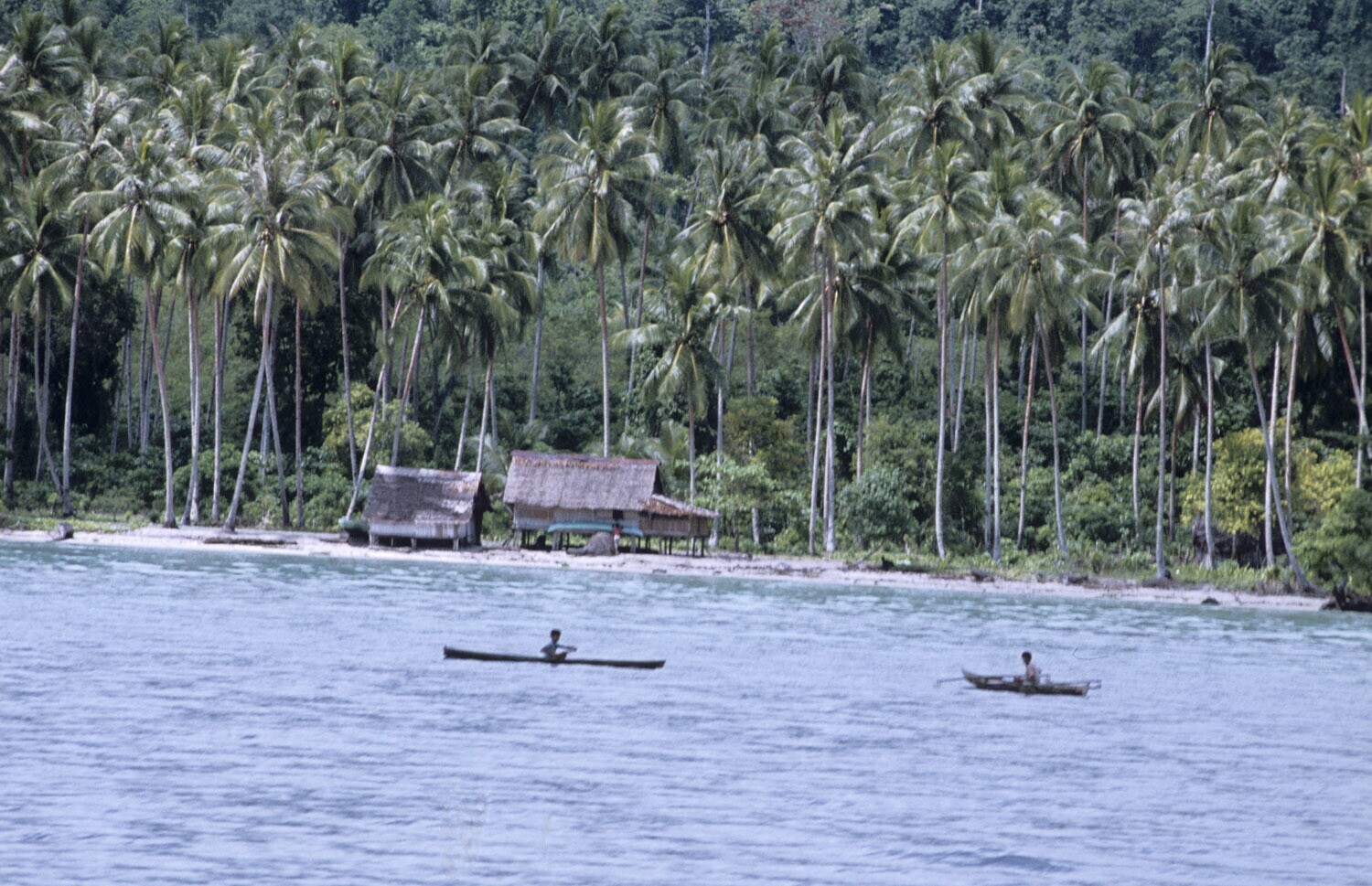 Een dorp aan de kust op het eiland Ambon onder de cocospalmen, Molukken.
