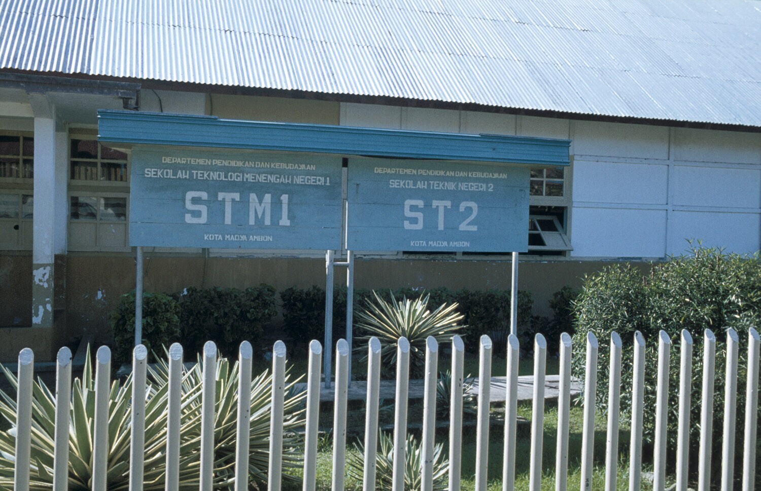Gebouw van de technische school waar de theoretische lessen gegeven worden. Kota Ambon, Molukken.