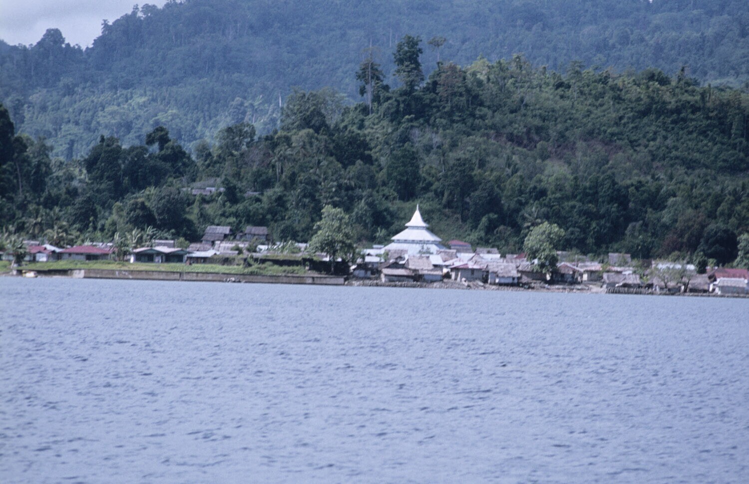 Gezicht van Saparua vanuit zee, Molukken.
