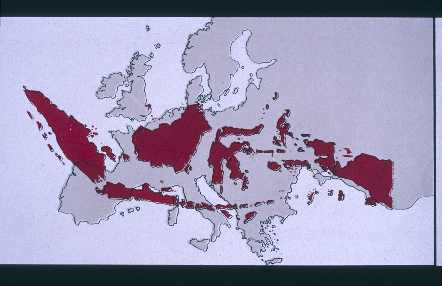 Kaart van Indonesië geprojecteerd op Europa.