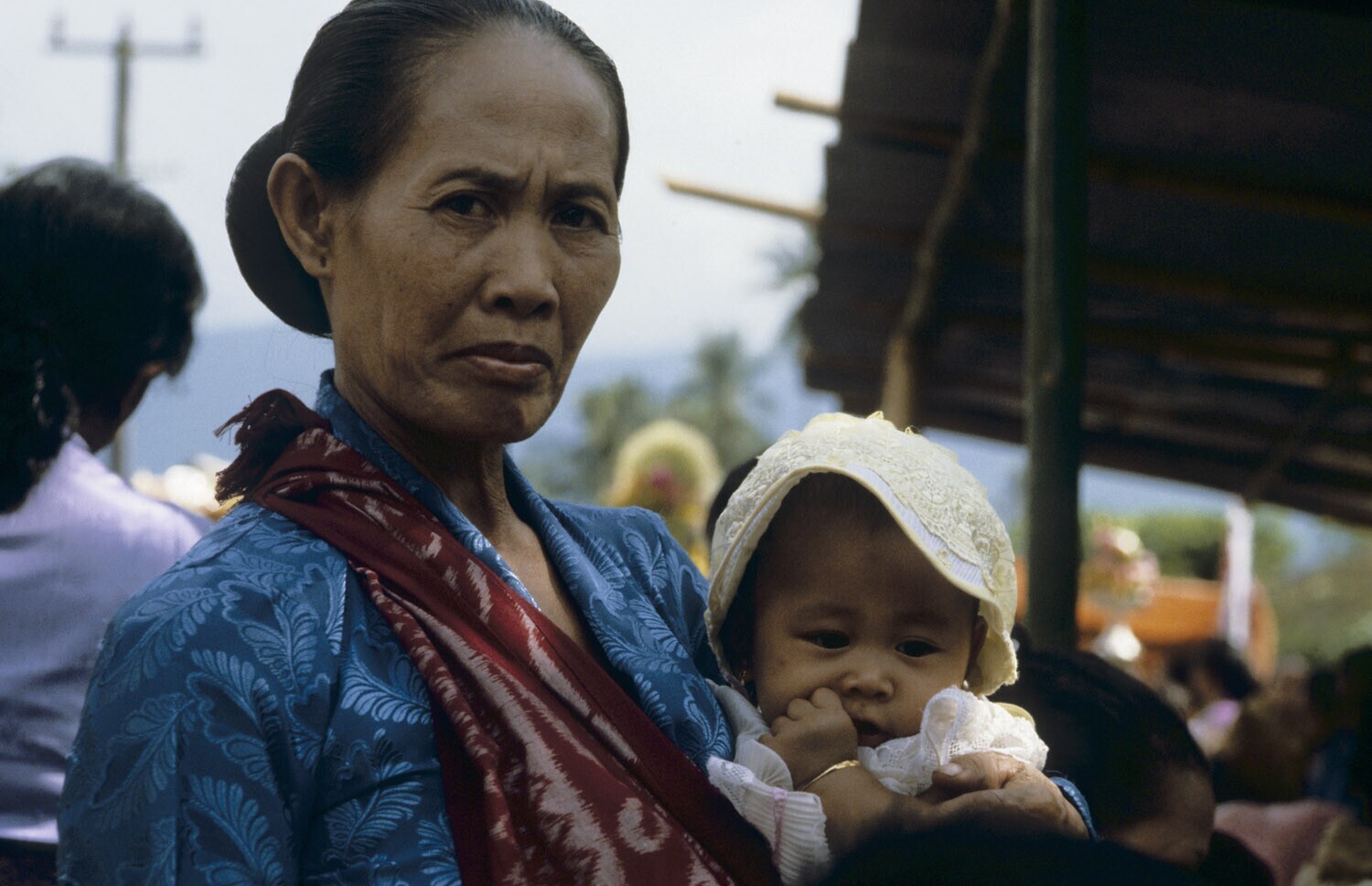 Vrouw met kind in een slendang, Bali.