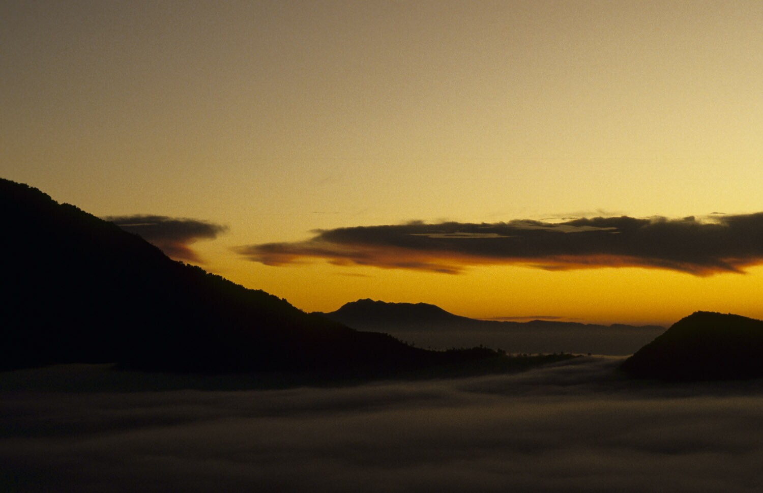 Opkomst van de zon, gezien vanaf de kraterrand van de Bromo, Oost-Java.