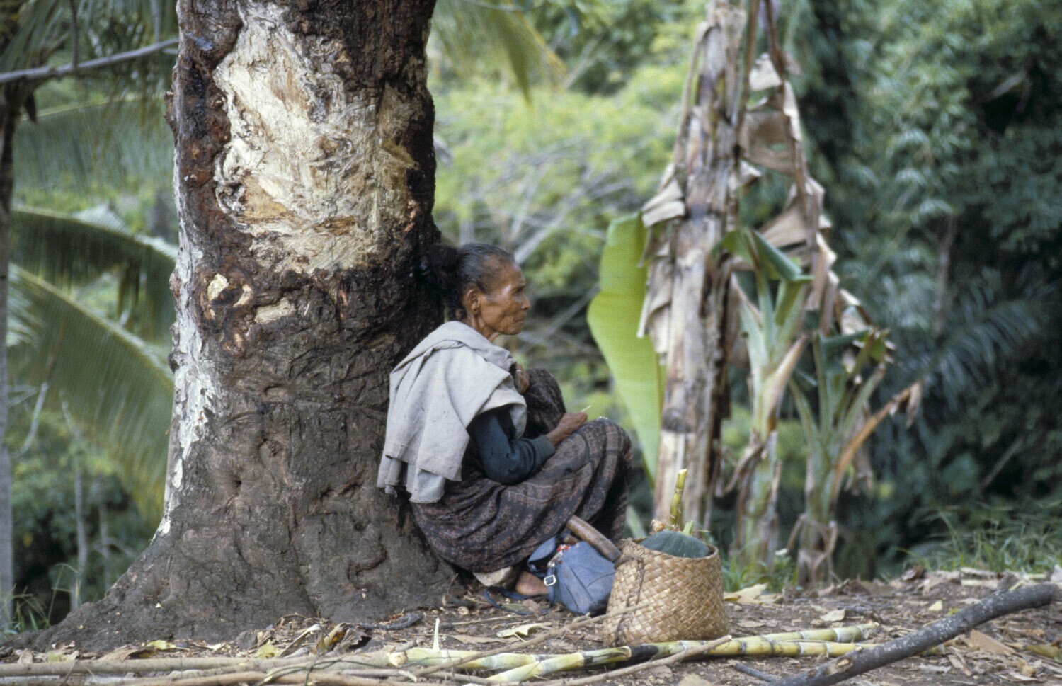 Rustende vrouw langs de weg van Ende naar Maumere op Flores.