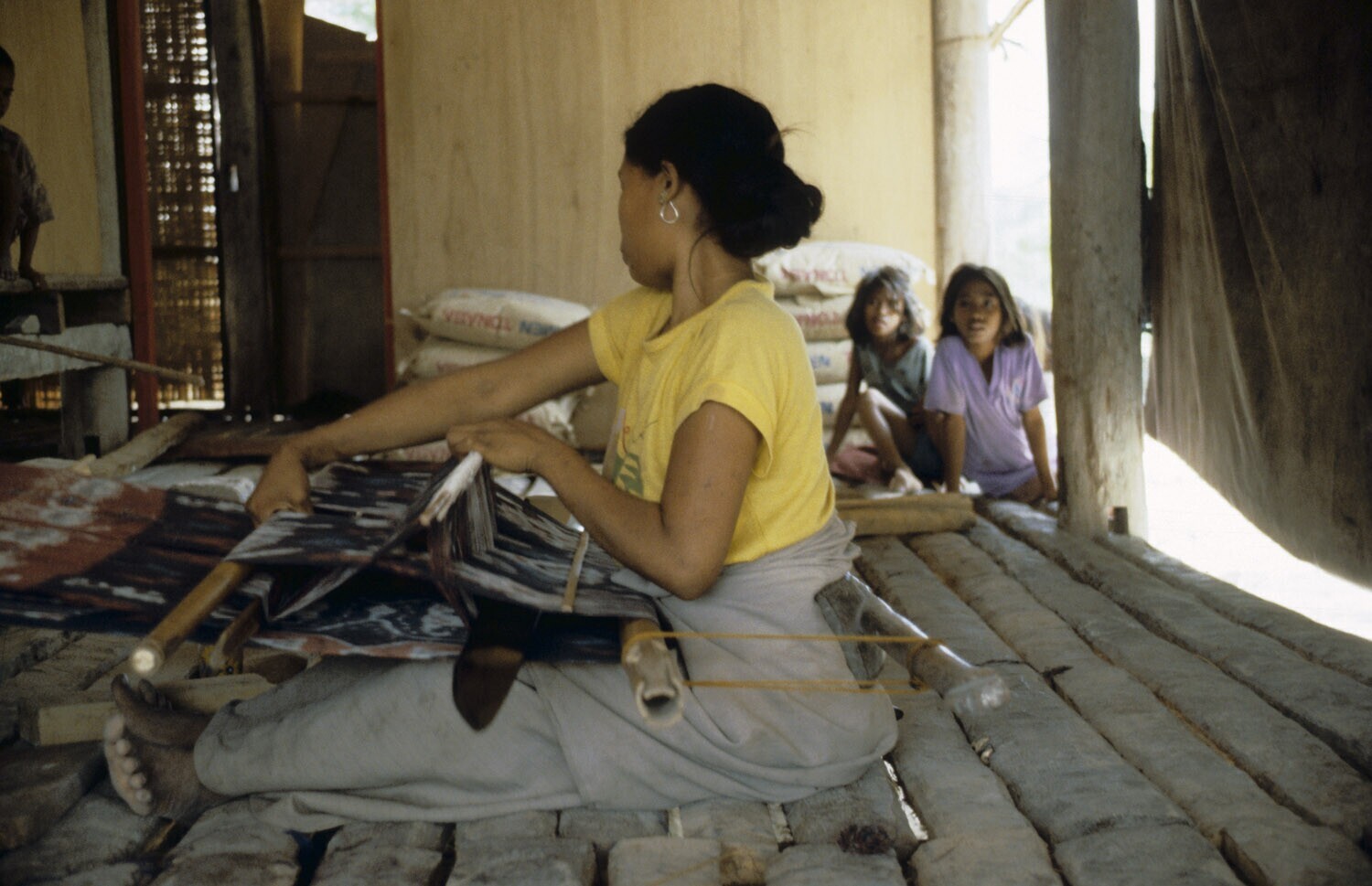 An ikat weaver with her weaving loom