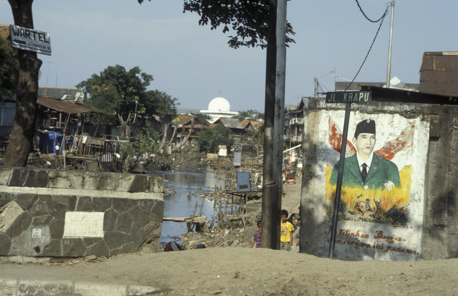 Java, Jakarta, Kota Kampong aan de kali Ciliwong, jalan Krapu. Politieke muurschildering
