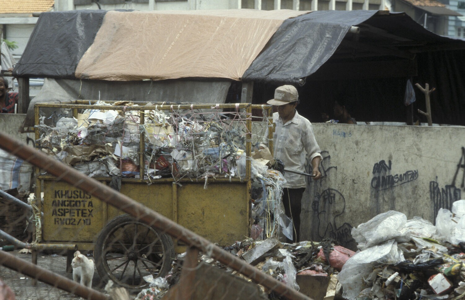 'Java, Jakarta, Kota Jalan Kali besar-west; vuilnis/afval ophaler. '