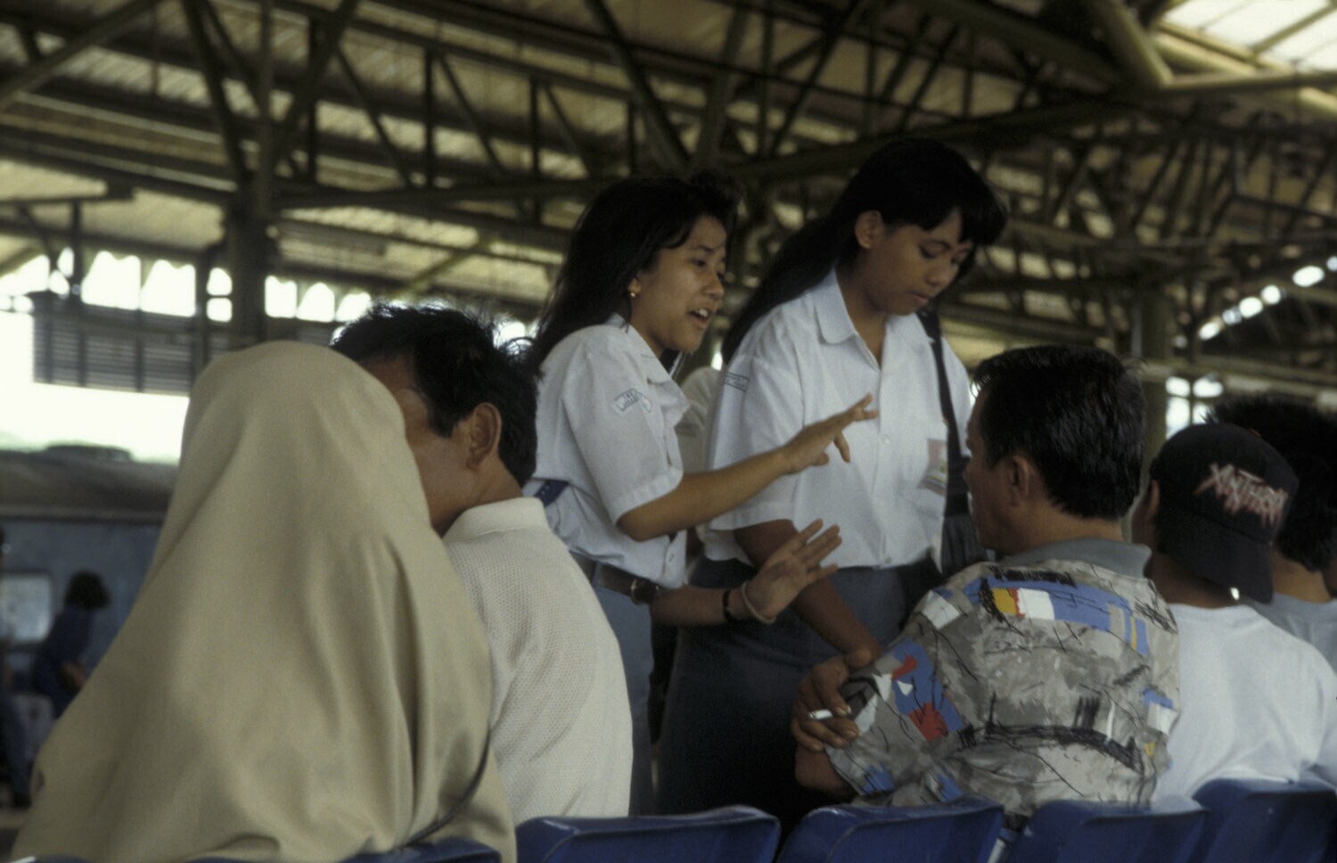 'Java, Jakarta Station Gambir, geopend in jan. 1993; wachtende mensen '