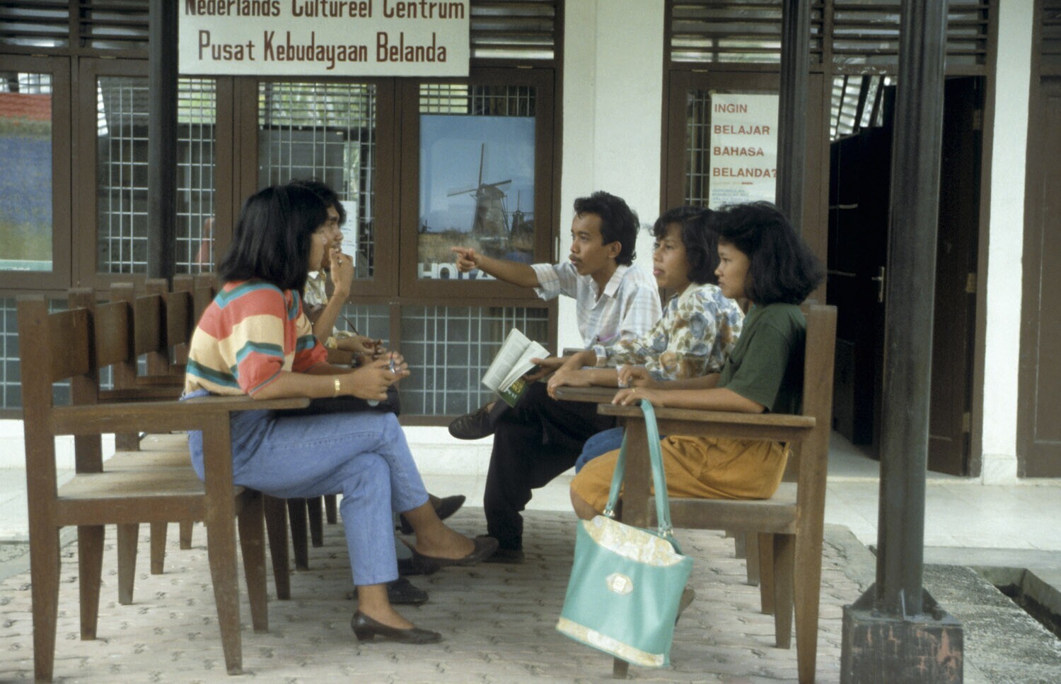 'Sumatra, Medan Een van de gebouwen van de USU = Universiteit Sumatra Utara; deze universiteit heeft de grootste campus van zuidoost Azië; het ligt op het terrein van een vroegere plantage. Aantal studenten voor het Nederlands Cultureel centrum van de US