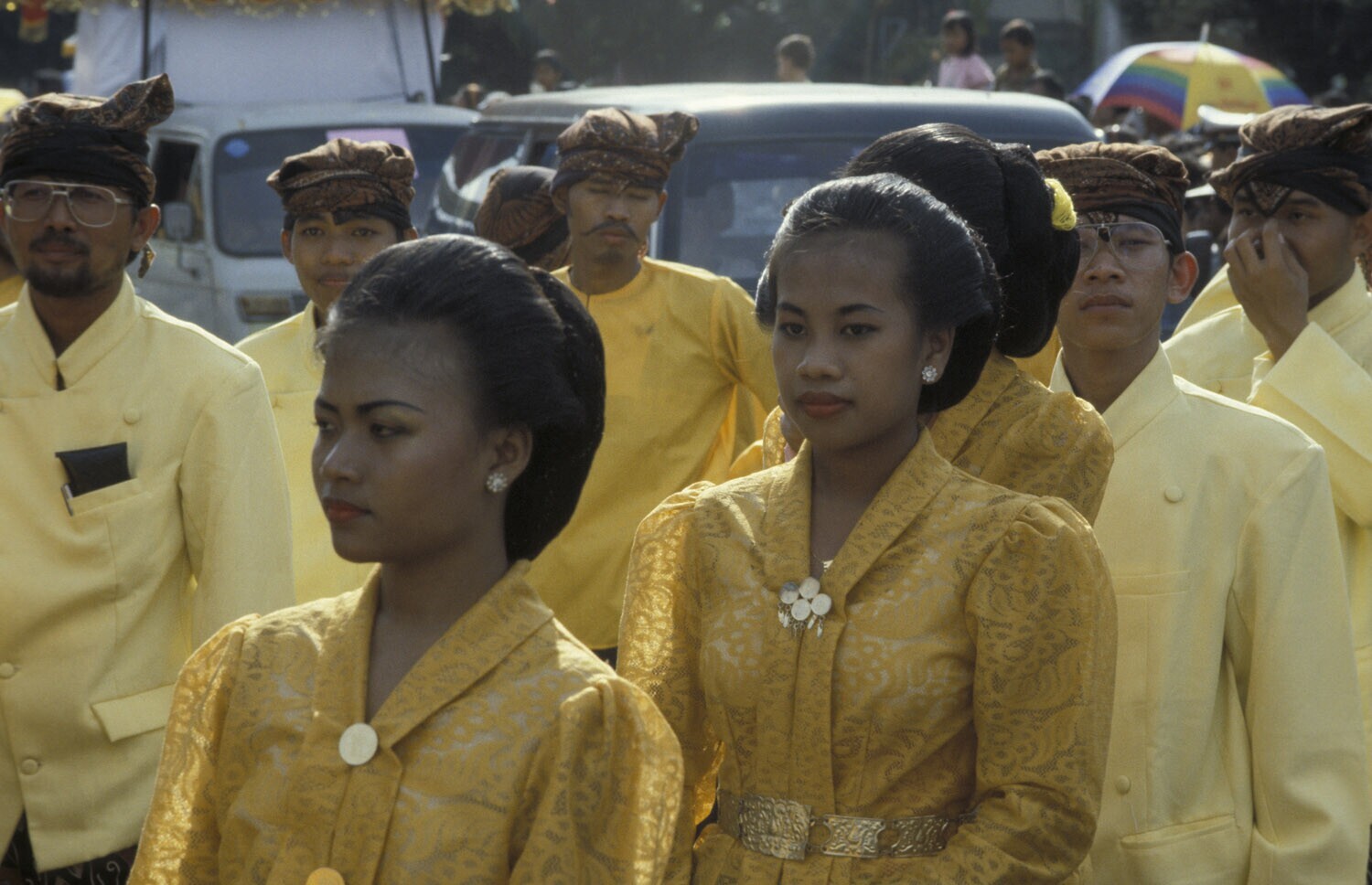 Java, Semarang Carnavaleske optocht aan de vooravond van Ramadan. Verschillende groepen presenteren zich hier. Het is een typisch Semarangs gebruik.