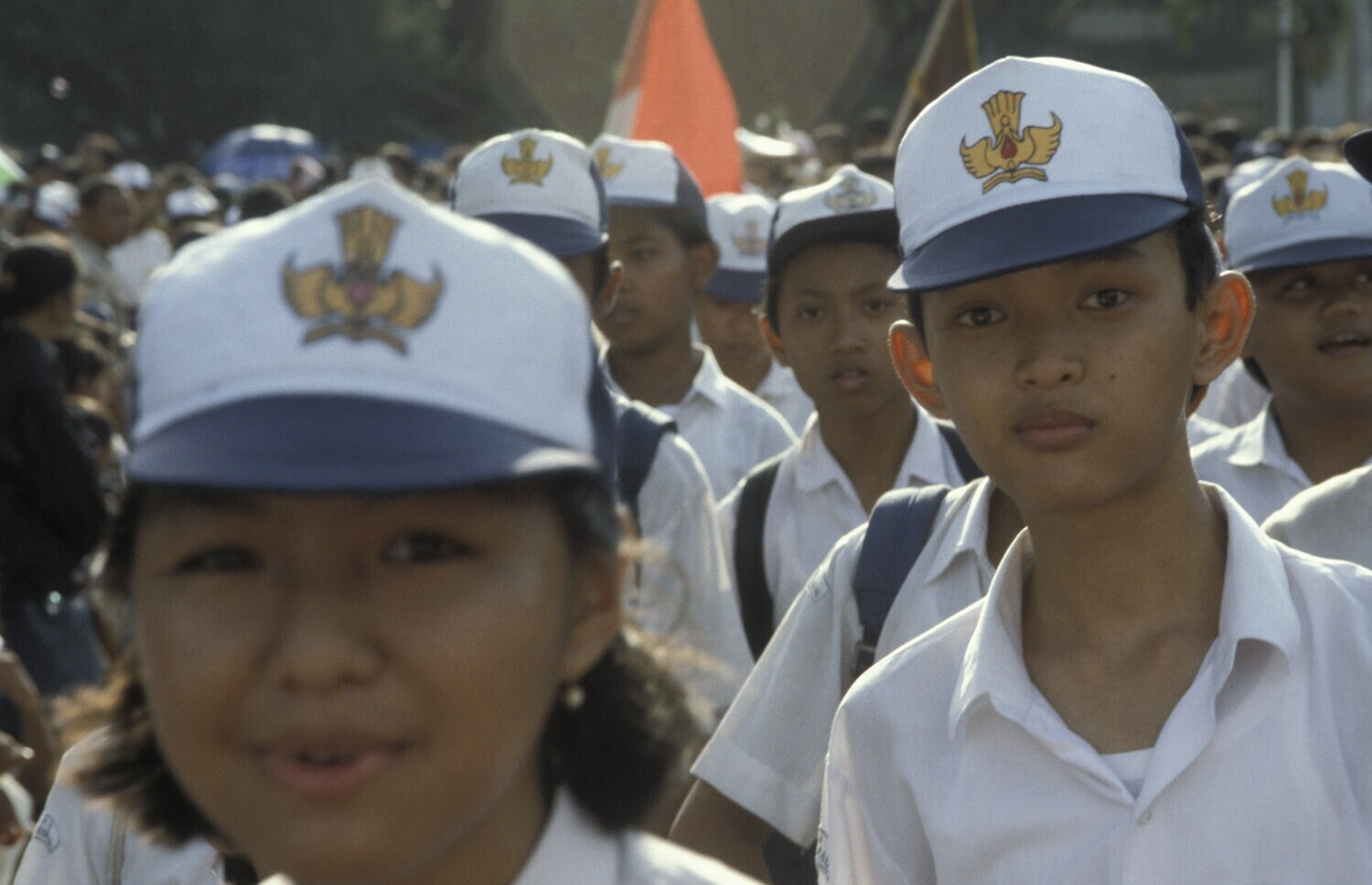 Java, Semarang Carnavaleske optocht aan de vooravond van Ramadan. Verschillende groepen presenteren zich hier. Het is een typisch Semarangs gebruik.