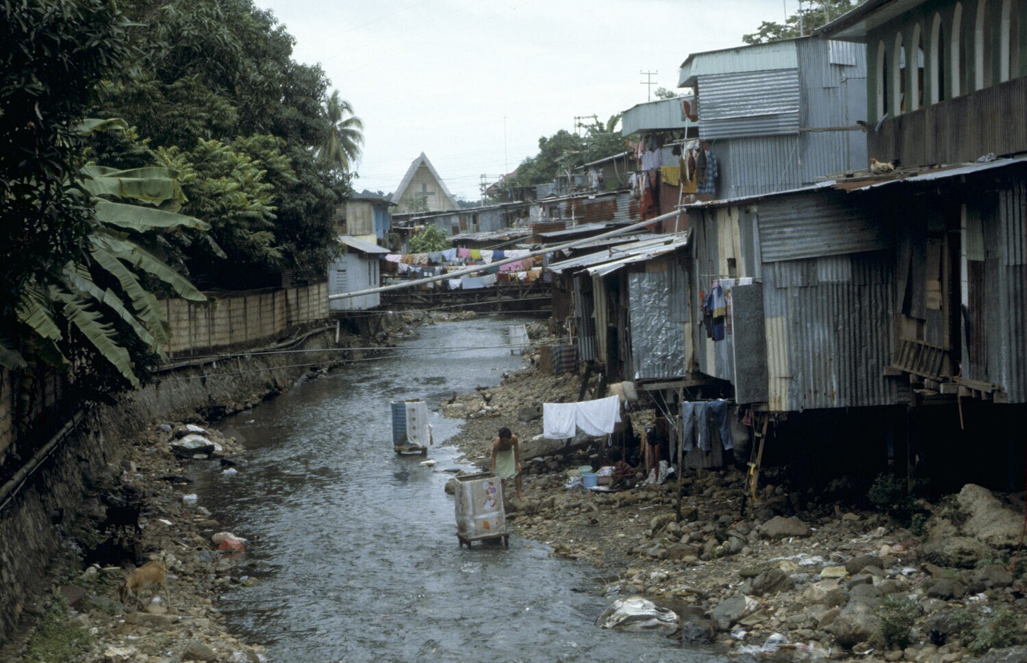 Irian Jaya, Jayapura Achterkant van de Ampera-markt, de kali (=rivier) ....