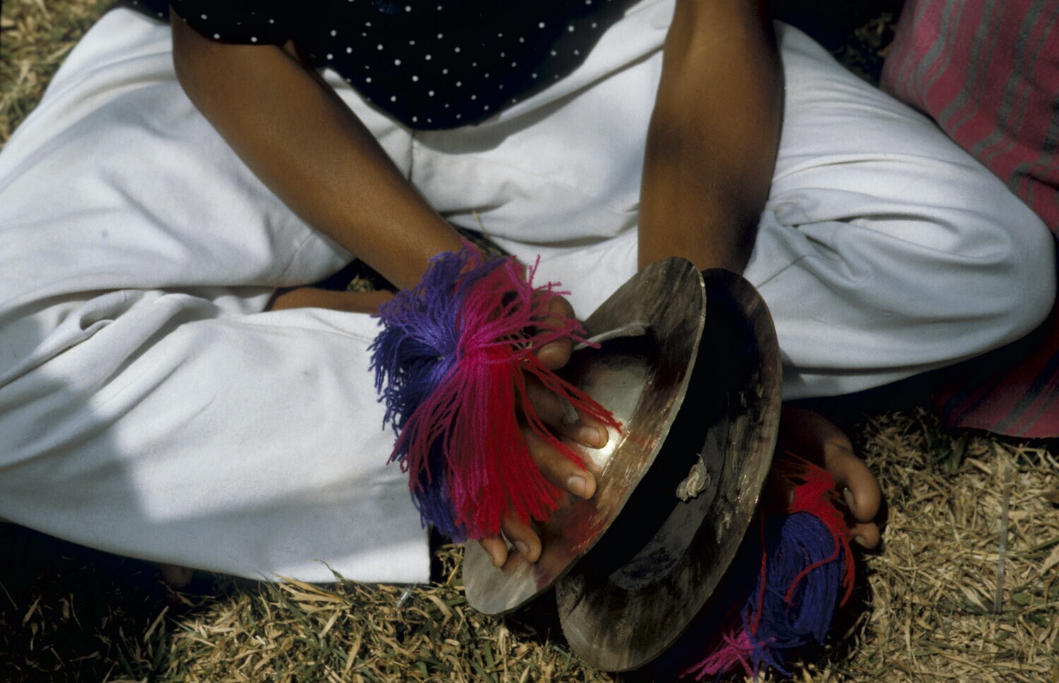 Close-up van het bespelen van een deel van het gamelan-orkest.