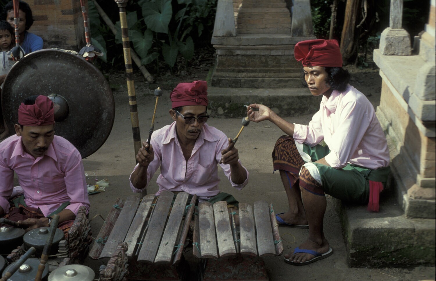 Gamelan orchestra playing after the cremation ceremony of Cokorda Gede Agung Sukawati