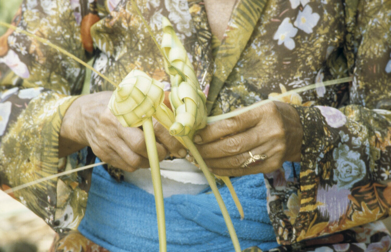 Het vlechten van offers tijdens de voorbereidingen voor de crematie van Cokorda Gede Agung Sukawati