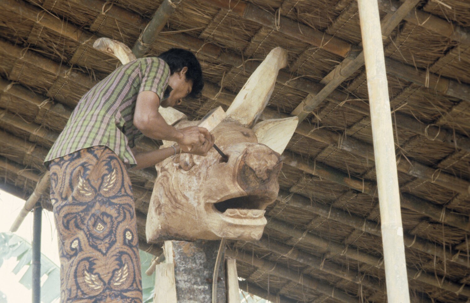 Bull-like coffin under construction to be used during the cremation ceremony of Cokorda Gede Agung Sukawati