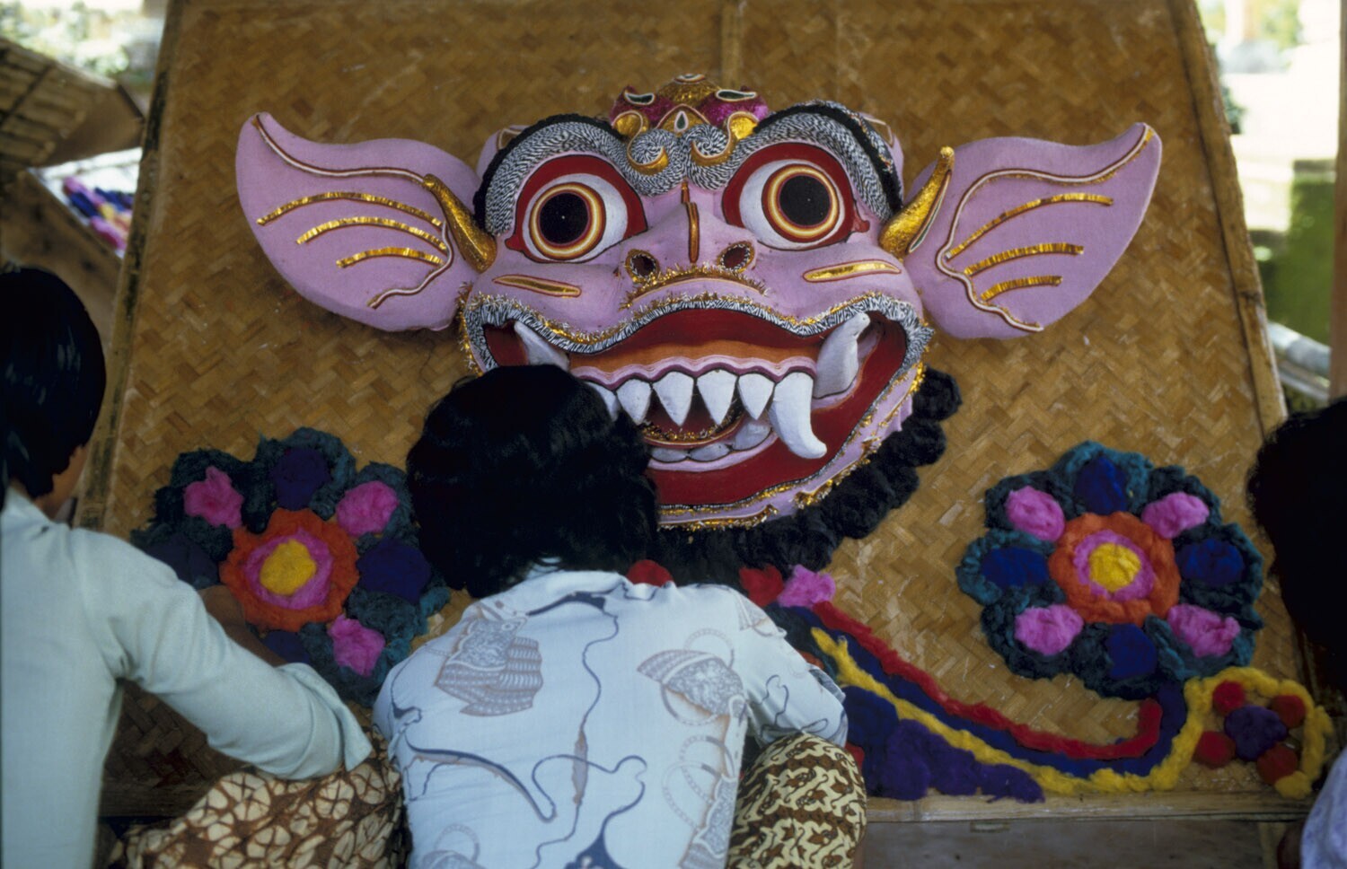 A mask for the cremation tower of Cokorda Gede Agung Sukawati under construction