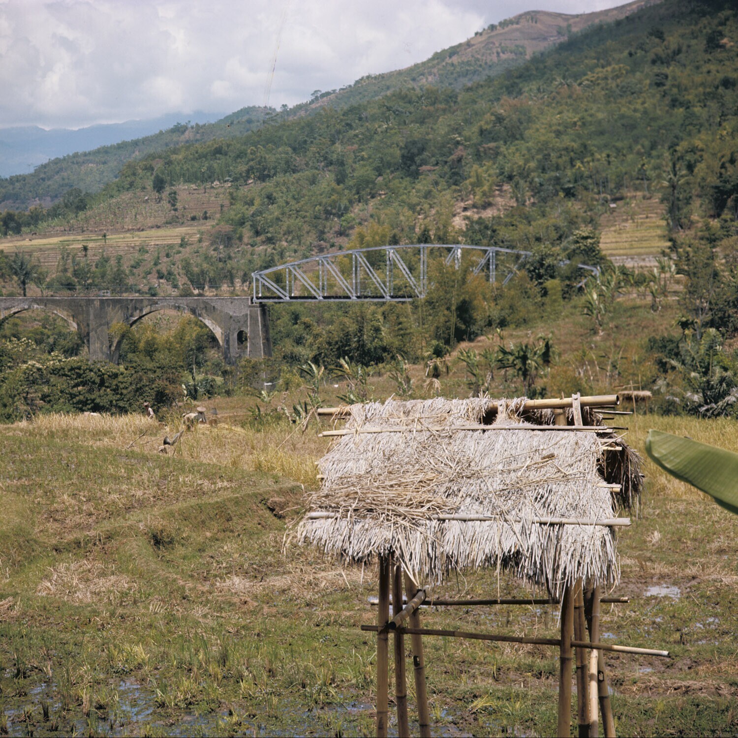 Huisje op palen voor de vogelverjager van het rijstveld, Java