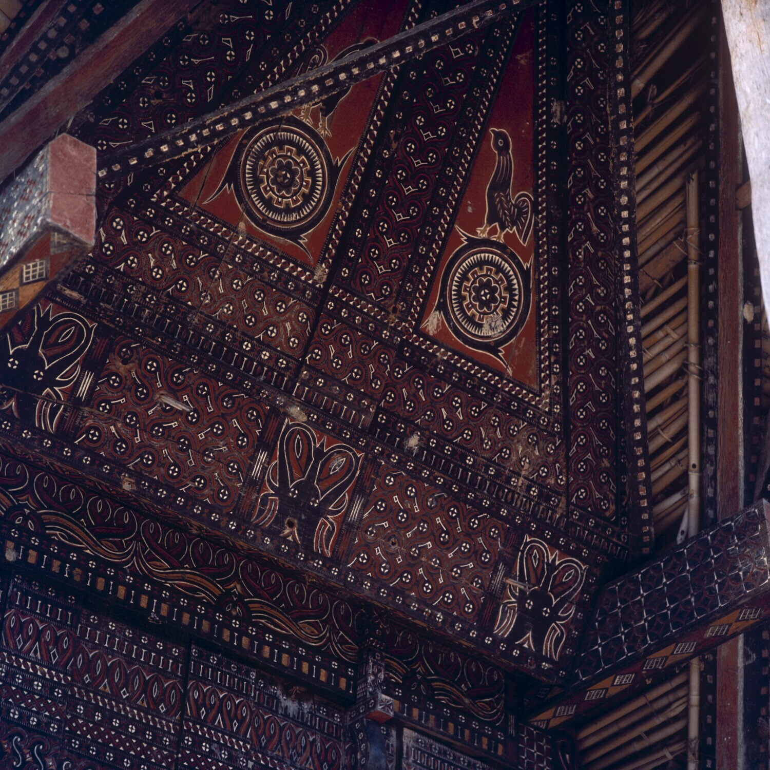 Voorgevels van huizen in dorp Pilawa, Tana Toradja, Sulawesi