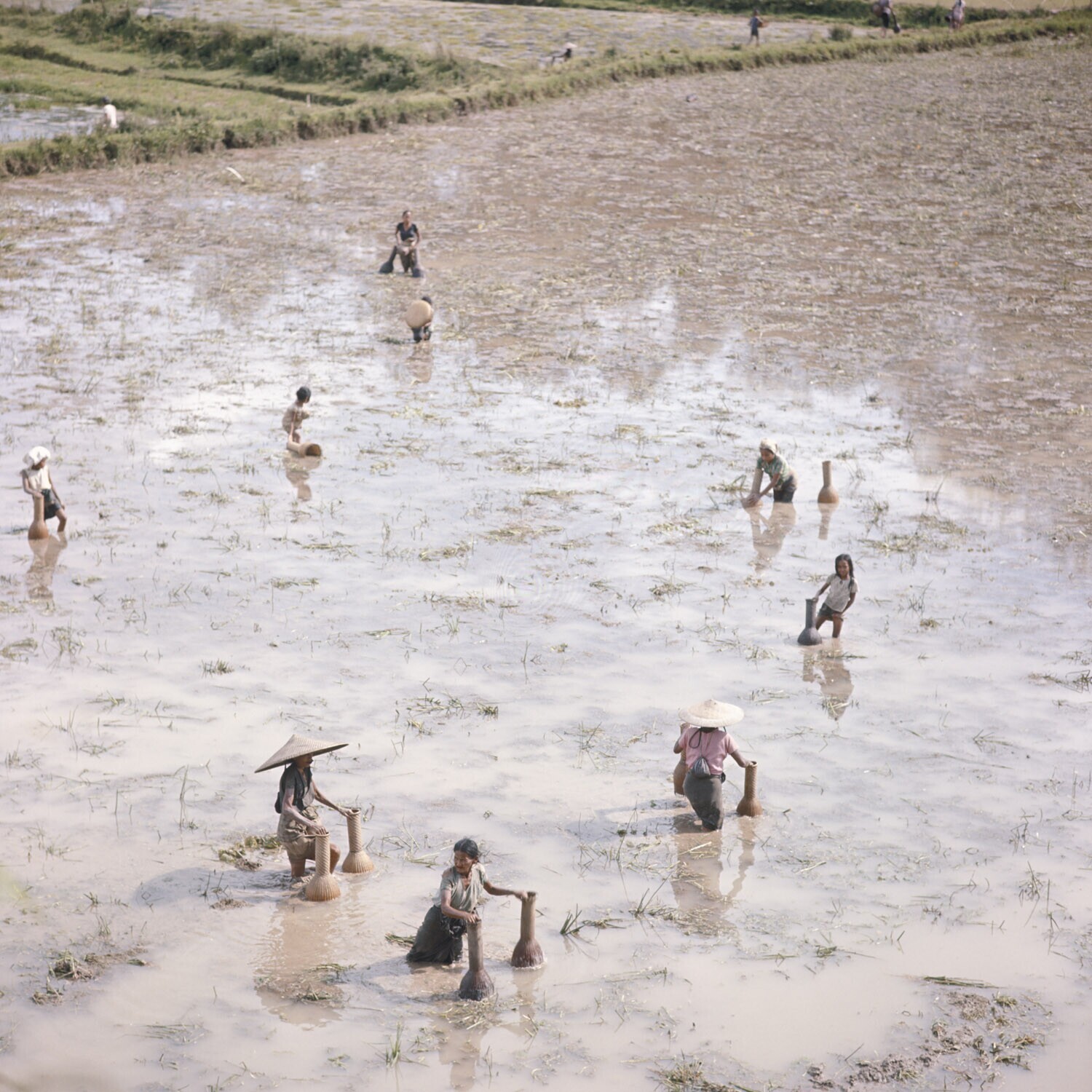 Visvangst in de sawah bij Panganan, Tana Toradja, Sulawesi