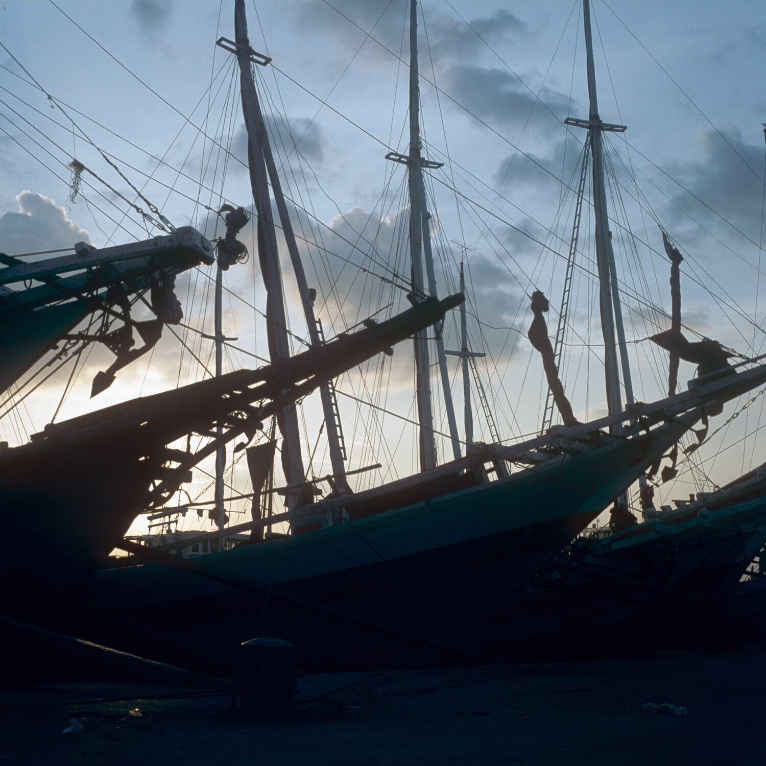 Buginese prauwen langs de kade in de haven Sunda Kelapa