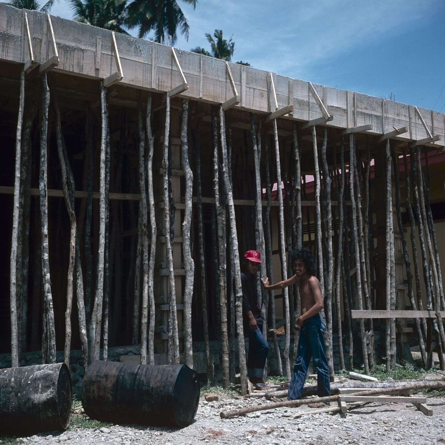 Houten stellage voor betonstorting ten behoeve van huizenbouw, Palu, Sulawesi.