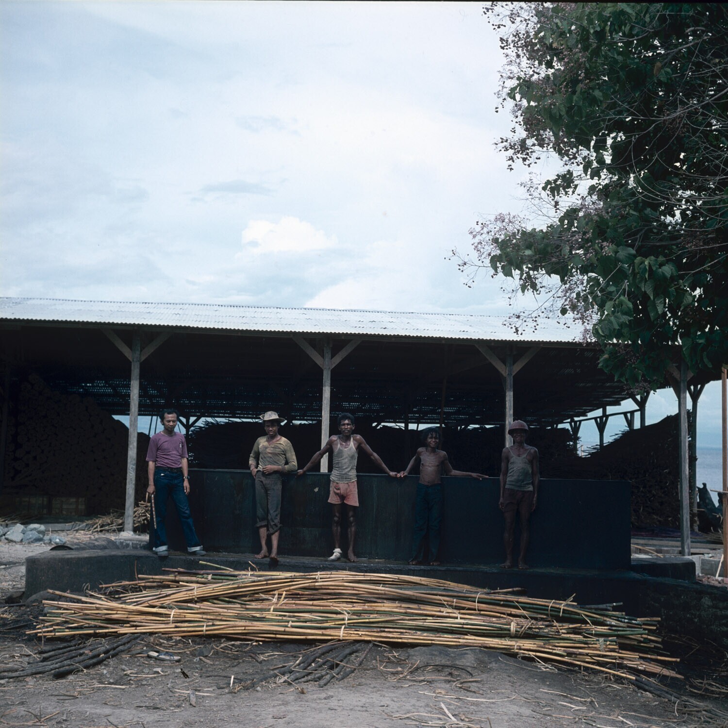 Arbeiders bij de rotanwerkplaats in de buurt van Palu, Sulawesi