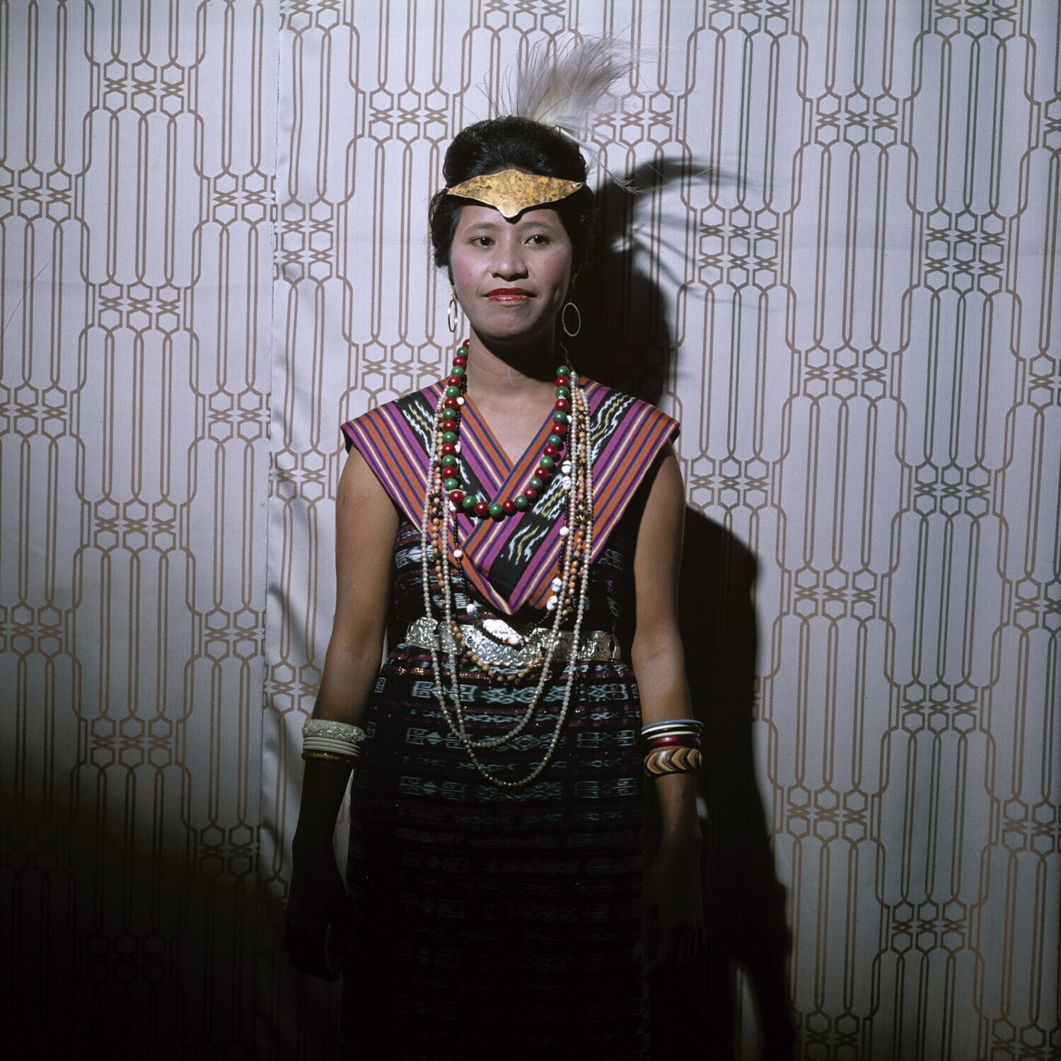 Portret van een vrouw in gelegenheidskleding te Ambon (stad)