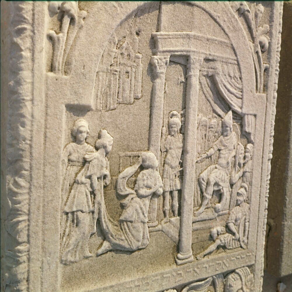 Reliëfs op graven op de oude Joodse begraafplaats Beth Haïm