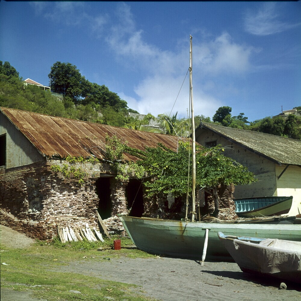 Resten van de oude pakhuizen gelegen op het strand benlen bij Fort Oranje
