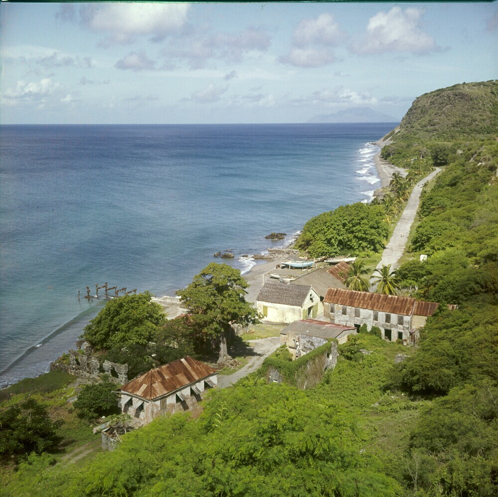 Gezicht op resten van pakhuizen, gezien vanaf Fort Oranje