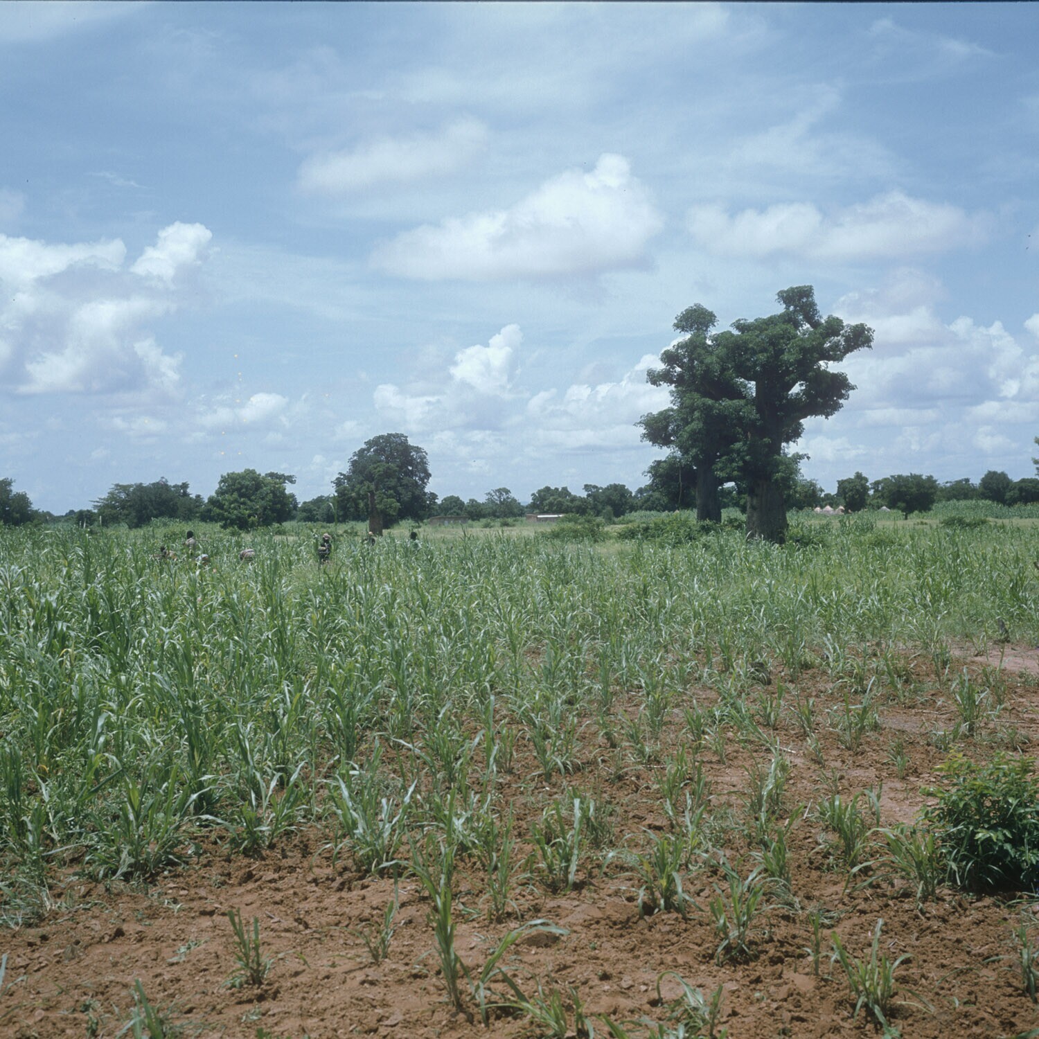 Een milletaanplant welke op de voorgrond gedeeltelijk gewied is.