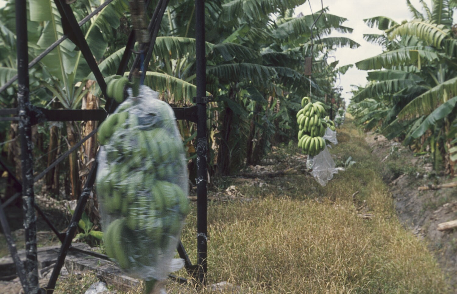 Bakovenaanplant (bananen), transport van de geoogste bananentrossen