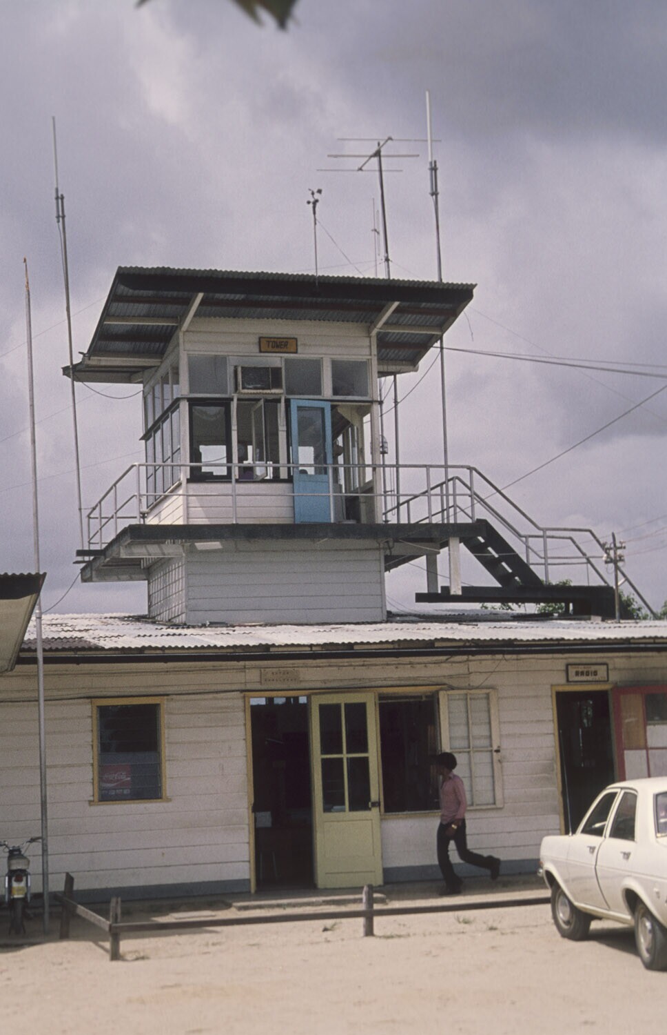 S.L.M. (Surinaamse Luchtvaart Maatschappij) hier de verkeerstoren te Zorg en Hoop