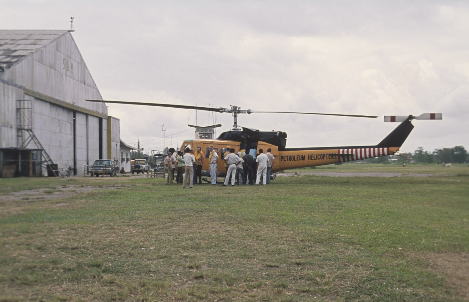 Petroleumhelicopter te Zorg en Hoop in gebruik voor de exploratie voor de kust van Suriname
