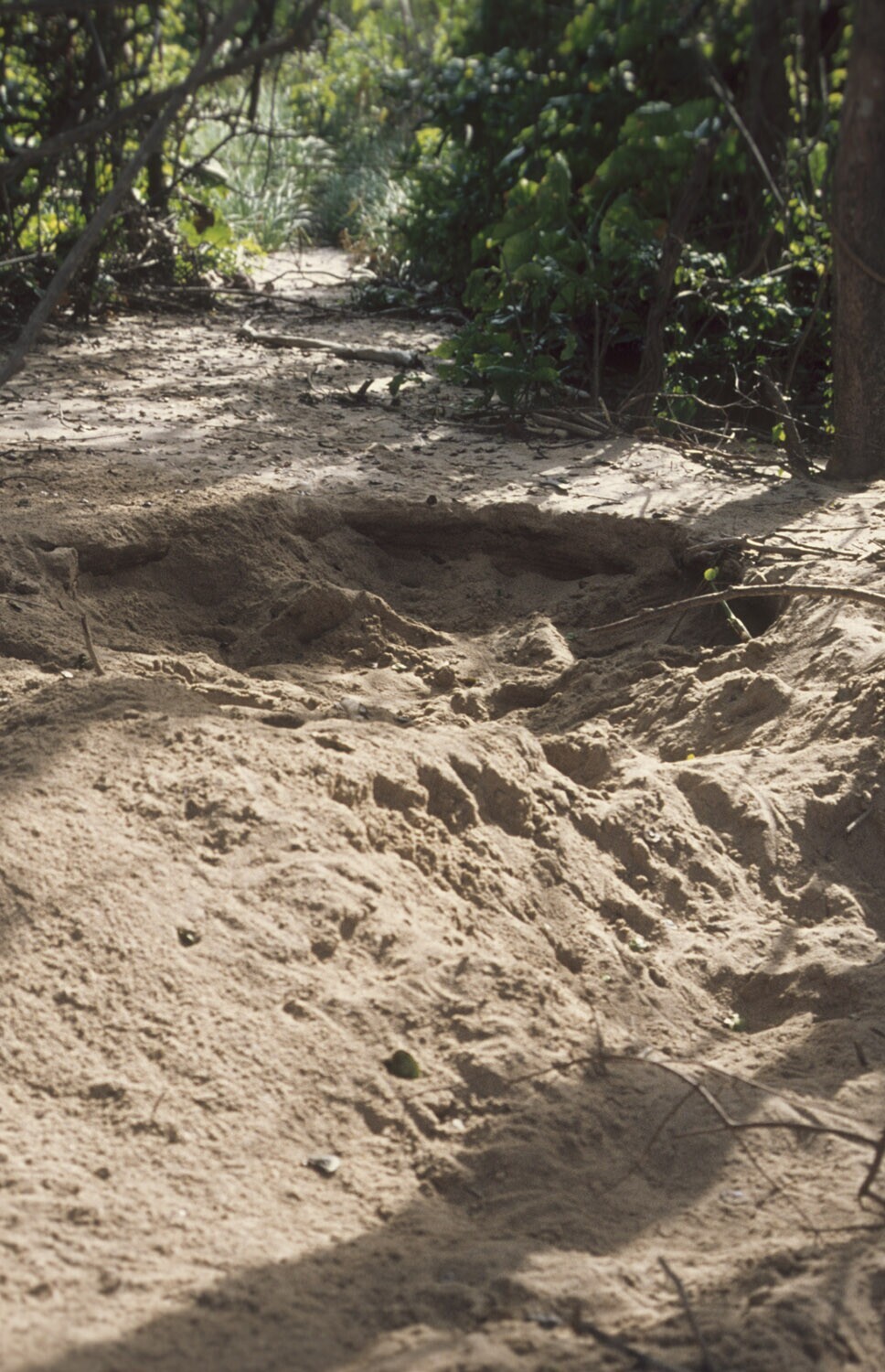 Zandstrand van Galibi, nest van een zeeschildpad in dit natuurreservaat