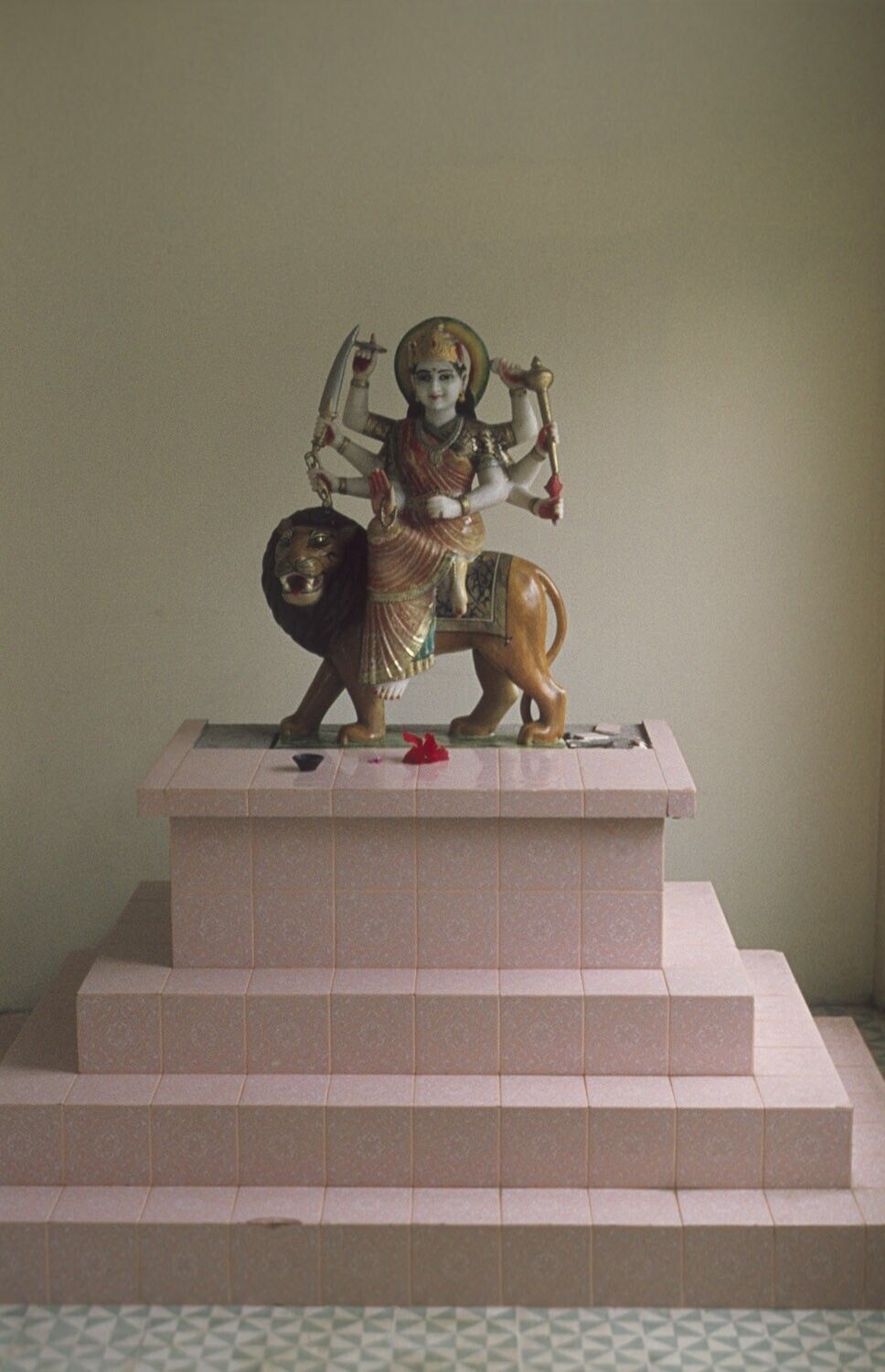Goden op de schrijn in een Hindoetempel aan de Koningsstraat