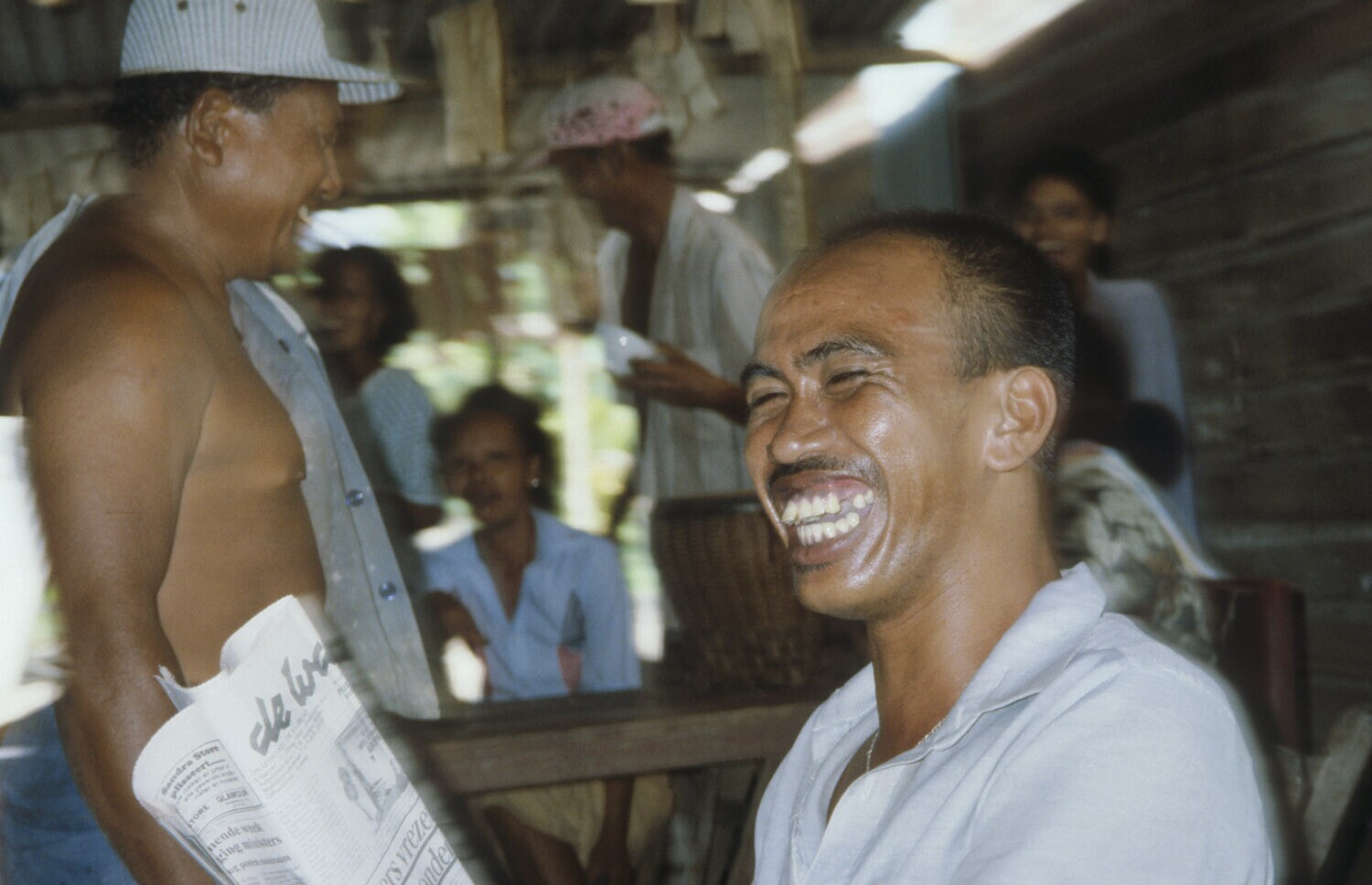 Islamitische besnijdenisfeest van twee Javaanse jongetjes in Lelydorp, familielid tijdens de feestelijkheden