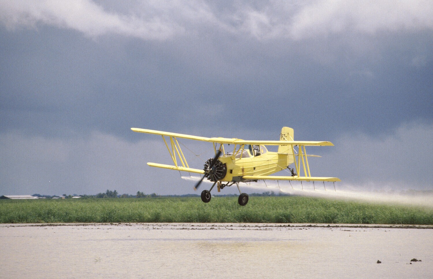 Nieuw Nickerie; vliegtuig t.b.v. verspreiding bestrijdingsmiddelen en/of zaaigoed